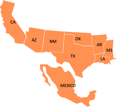 Serving: CA, AZ, NM, TX, OK, AR, LA, MS, and Mexico